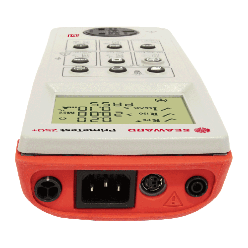 The PrimeTest 250+ portable appliance tester is battery powered and handheld to allow for fast and efficient testing with clear PASS/FAIL indication and test result values. It has a comprehensive range of mains and battery powered tests, data storage and label printing features.