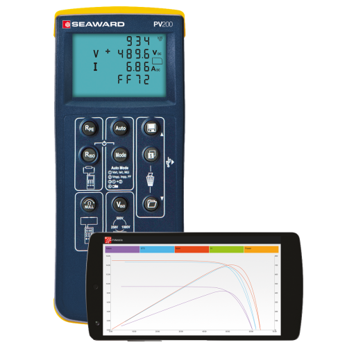 The PV200 is a compact & cost effective I-V curve tracer that uses simple push button operation making it an efficient and versatile tester for PV systems. 999 datasets can be stored on the instrument and once downloaded to the SolarCert software comparison to the standard test conditions can be made.