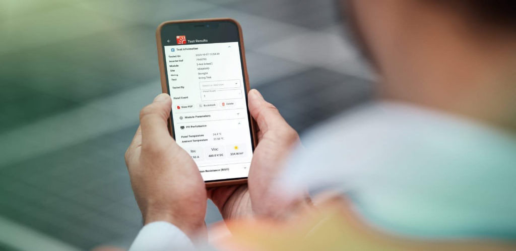 PV:Sync Mobile is the companion app designed exlusively for use with the PV:1525 PV Test solution, compatible with Android and IOS Devices.